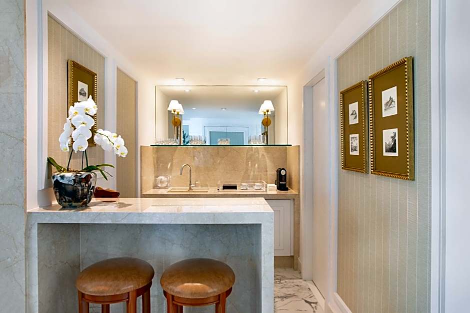 This presidential room offers panoramic sea views, cable TV with international channels, electronic safe, mini-bar and high-speed WiFi. It also offers a work desk, living room and a dining room. Private bathroom comes with a hairdryer.